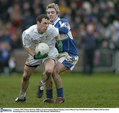 Timmy tried to transfer to Allenwood in 2004 and ended up not playing football for the full year, he was 24 years old. The following year he played in the Kildare Senior county final in Newbridge losing by 1 point to Moorefield. The year after that he was called up to the Kildare county panel where her remained for 3 years although never played a Championship match for Kildare. Most people would agree if he did not transfer he would never have gotten his chance with the county.